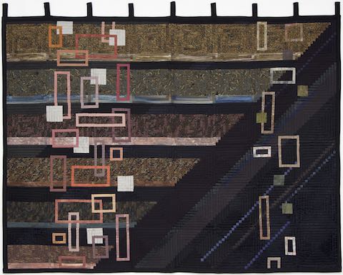 DescriptionTitle: Kamuri = Beautiful Dreams from Villages Year Completed: 2016 Size: H66” × W82” / H165 cm × W205 cm Material: Indonesian batik, Thai silk, new American hand-painted cotton, American and Japanese hand-dyed cotton Statement: We visited Bali after an eleven-year absence. I found six kinds of batik, and began to think of how I could use them in a design. Before we had seen batik only in traditional brown and black colors, but now many of them were bright. This told us that times had changed. Using a background of different kinds of black fabrics, I played with colorful squares and rectangles. |