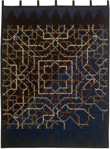 DescriptionTitle: My Arabic World Year Completed: 2015 Size: H82.5” × W62” / H210 cm × W158 cm Material: Antique cotton (including aizome), new cotton (including Indonesian batik) Statement: I had been thinking about using Arabic patterns in a reversible Log Cabin quilt for almost thirty years. The basic design possibilities for such quilts use only vertical and horizontal lines and diagonals at a 45 degree angle. Any other line, curve, or shape can only be approximated. For that reason I found it almost impossible to include the kinds of intricacies and elements. |