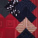DescriptionTitle: Oral Tradition Year Completed: 1986 Size: H76.5” × W58.5” / H194 cm × W148 cm Material: old cotton (aizome, akanezome) new cotton (furoshiki, apron, table center) When I purchased the akanezome fabrics for this quilt they were already well more than one hundred years old, and had been used for women's kimono linings. They showed limited signs of fading, and I used those portions to give a sense of gradations. This quilt was exhibited widely in the next few years, and I began to see signs of severe fading. I have to conclude the exposure to artificial lighting causes this kind of fabric to fade much more than sunlight does. Statement: Between BOHKYOH (Hometown Nostalgia) and Kyoto (Old Capital) a year and a half had elapsed. When BOHKYOH was finished, I had thought nothing could be more complicated, but when I completed KOTO (Old Capital) I had realized that there were still more possibilities even though KOTO was more complicated than BOHKYOH. Thus after only six months I began DENSHOH (Oral Tradition), my third reversible quilt. I had continued to accumulate aizome fabrics in particular solids, whose depth and feeling I came to understand more and more. These cloths crossed the Pacific with me, and back in New York I would gaze at them every day, and talked with them. When, how, and by whom were these fabrics woven and dyed, and with what thoughts as they were made (for kimonos, or bedding, or for furoshiki?)? Their histories were all different...some were practically new, even though nearly one hundred years old, while others had become so worn that only a few places were still usable. In Japan one often finds objects which intentionally block one's line of vision into interior spaces. These often have the effect (whether intentional or not) of creating a sense of greater depth than one would perceive in their absence. In this design I used squares which seem to overlap to give this sense of greater depth. |