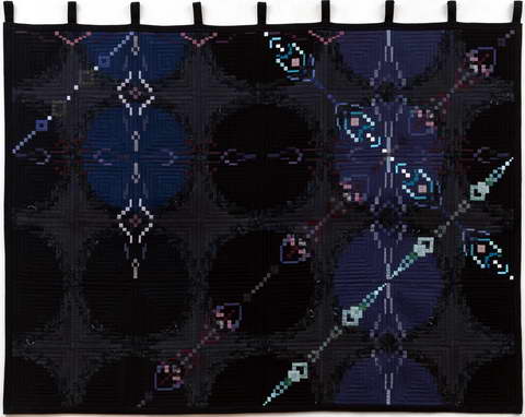 DescriptionTitle: Play of Lights Year Completed: 2009 Size: H66” × W81.5” / H168 cm × W206.5 cm Material: old Japanese cotton, modern Japanese and American cotton (including hand-dyed) Statement: My interpretation of the kaleidoscope pattern, with points of light converging, but with delicate rather than bright colors. |