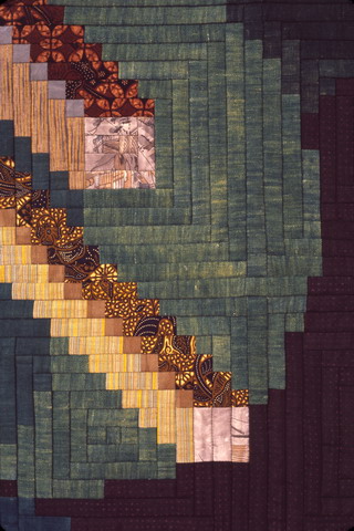 DescriptionTitle: Playful Abundance Year Completed: 2008 Size: H82.5” × W62” / H210 cm × W158 cm Material: old Japanese silk (kimono and haori linings), old Japanese cotton, modern cotton Statement: I created large curved shapes in the background through the use of slightly different shades of kusakizome, and then added many rectangular box-like shapes, all in the same diagonal orientation, using my very fond Indonesian batik, Japanese striped fabrics, and linings from men's haori (jackets worn over kimono) for the endpieces. Once again I realized that for some reason these were much more interesting than the linings for women's haori. |