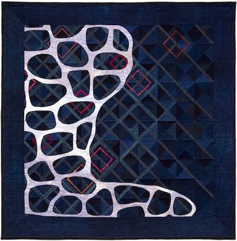 DescriptionTitle: Kizuna (Relationship) Series I: Prayer Year Completed: 2017 Size: H48” × W48” / H120 cm × W120 cm Material: antique cotton, modern (including hand-painted) cotton Techniques: Machine piecing, hand applique, hand quilting Statement: The Relationship series quilts are all based on the Kentucky Chain pattern. In this quilt the chain-link pattern gradually disappears as it moves towards the right. On top of this I used modern hand-painted cotton in regular and reverse applique, the latter in order to playfully hide and reveal the chain-link. |
