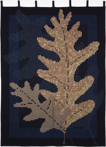 DescriptionTitle: Omokage = Remembrances Year Completed: 2018 Size: H84” × W63” / H210 cm × W158 cm Material: Antique cotton, antique silk (obi) Statement: New York's Central Park has many oak trees, and in Autumn the fallen leaves are like a carpet. The design comes from these leaves. |