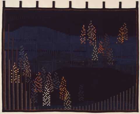 DescriptionTitle: Slanting Sunbeams Year Completed: 2007 Size: H66” × W81.5” / H168 cm × W206.5 cm Material: old Japanese indigo cotton, modern cotton Statement: The design comes from Autumn foliage in Southern France, not at all dramatic as I see in Japan, but extremely gentle. Seeing this in a panorama gave me a very relaxed feeling. |
