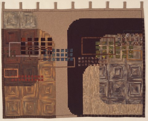 DescriptionTitle: Slanting Sunbeams Year Completed: 2007 Size: H66” × W81.5” / H168 cm × W206.5 cm Material: modern cotton (almost all hand-dyed) Statement: The design comes from the changing shapes and positions of shadows created by sunlight coming through multi-layered airplane windows as the plane changed course and attitude. |