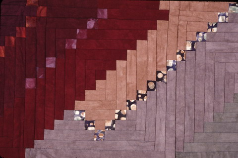 DescriptionTitle: Song For a Friend Year Completed: 1999 Size: H36” × W45.5” / H92 cm × W115 cm Material: new hand-dyed cotton, cotton satin Statement: This quit is smaller than my usual reversible quilts, which might suggest that it was easier to make, but in actuality it was much harder as the design possibilities were much more limited. The two large squares represent two youths and the hope that their horizons or worlds can grow larger and larger. (Private collection) |