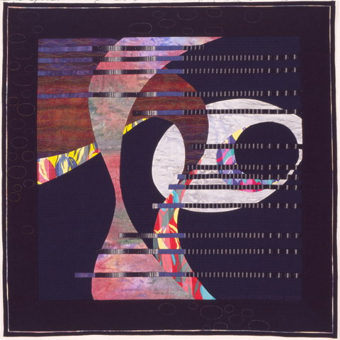 DescriptionTitle: Sounds of the Seasonal Winds Year Completed: 2007 Size: H36” × W36” / H91 cm × W91 cm Material: old cotton, new cotton (including Japan and American hand-dyed), blend, beads Statement: While it is still cold outside, the ice begins to melt, and we feel that Spring is just around the corner. This is my first broad use of machine quilting. I attached a few beads to simulate the reflections from the ice. |