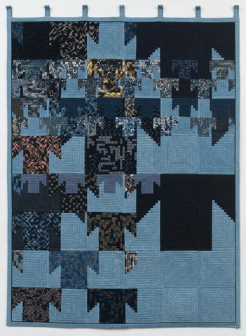 DescriptionTitle: T-Carnival Year Completed: 2010 Size: H82.5” × W62” / H210 cm × W158 cm Material: old Japanese cotton, new Japanese cotton Statement: Against a background of modern asagi (light blue) fabrics I placed large "T" shapes. In the left half of the quilt I placed mid-size "T" shapes,and then the smallest size in horizontal foreground rows to create a complicated impression. Finally I was able to make good use of many scraps which I had accumulated. |