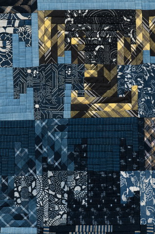 DescriptionTitle: T-Carnival (Detail) Year Completed: 2010 Size: H82.5” × W62” / H210 cm × W158 cm Material: old Japanese cotton, new Japanese cotton Statement: Against a background of modern asagi (light blue) fabrics I placed large "T" shapes. In the left half of the quilt I placed mid-size "T" shapes,and then the smallest size in horizontal foreground rows to create a complicated impression. Finally I was able to make good use of many scraps which I had accumulated. |