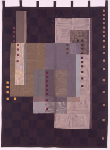 DescriptionTitle: Voice of Angels Year Completed: 2003 Size: H82.5” × W62” / H210 cm × W158 cm Material: old cotton, new silk, new cotton (including hand-dyed) Statement: This looks technically easier, but actually provided greater difficulties than the blue side. By concentrating on the complexities of the blue side and the its many small pieces, the pieces on the black side sometimes did not fit together properly and therefore required reassembly and readjustment. I realized once again how what looks easy may actually be quite hard. The small squares suggest things falling from heaven. |