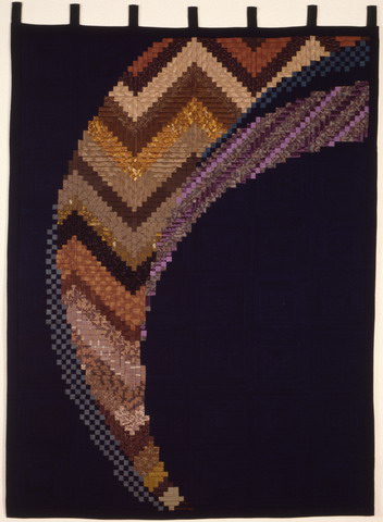DescriptionTitle: Yearning for Autumn Year Completed: 1992 Size: H75” × W56.5” / H190 cm × W143 cm Material: old cotton (aizome, kusakizome), old silk (obi, haori, kimono), new silk (necktie), wool (kimono), new cotton Statement: For the first time I considered cutting Log Cabin strips into small squares, which offered many new design possibilities, such as the checkerboard sections used here. The zig-zag parts came from seeing many sculptures above the doorways. |