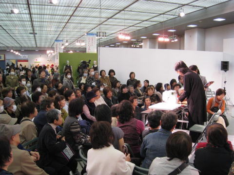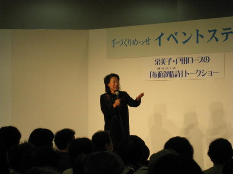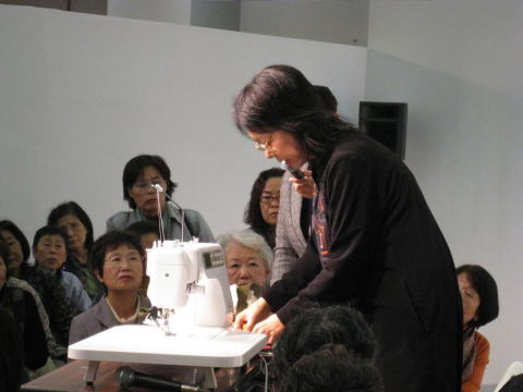 「布遊叙情詩」と題した作品展を2009年11月13、14日、京都市勧業館(みやこめっせ)にて開きました。初期から近年までのリバーシブル・ログキャビン作品8点を含む31作品を展示。 ギャラリートークとリバーシブル・ログキャビンのブロック制作実演も行いました。
