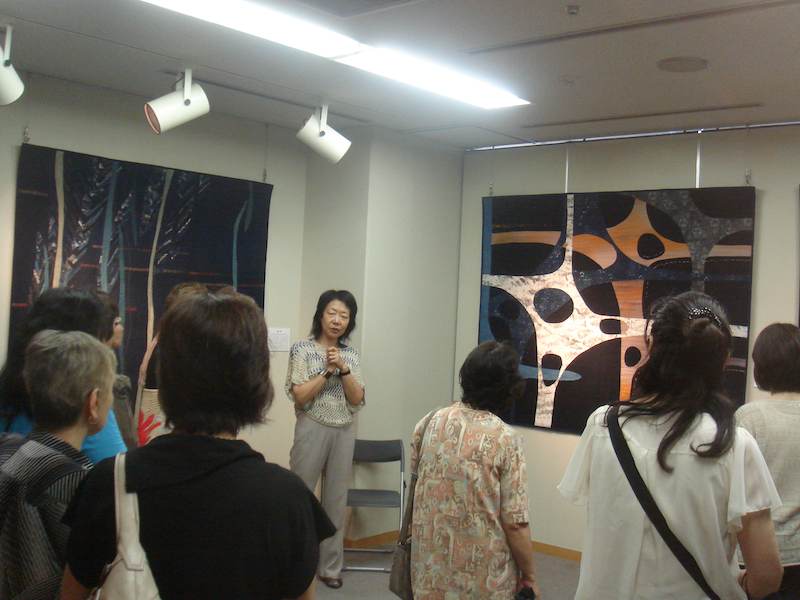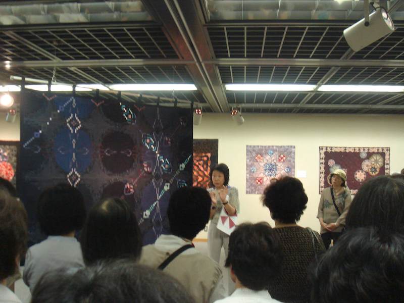 京都文化博物館にて 来場いただいた皆様に、今回のテーマの「カレイドスコープ(万華鏡)」というパターンについて説明。解っていただけたかな・・・??