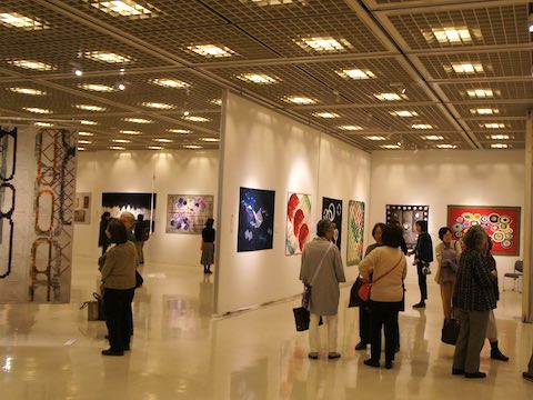 広々とした会場に、キルトをゆったり掛けて すべての作品を遠くからも近くからも、角度を変えて斜めからも見て頂けるように展示しています。 今回は5日間で、約1500人に観て頂きました。