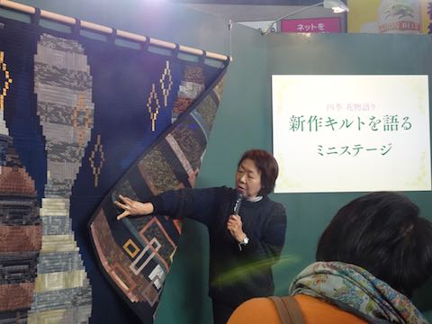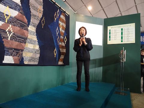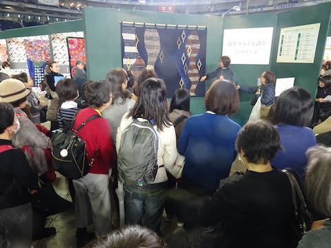 リバーシブルなのに両面が見えるように展示されなくて残念。反対面にも全く別のデザインがあることを説明しています。