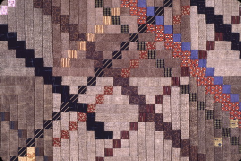コメント : 明治時代ののれんが沢山たまったので、それらをベースに、いつかどこかで見た地下鉄やバスの地図からアイデアが来たのかもしれません。古いのれんは手に入れたときはまっ茶色のごわごわですが、何回も洗濯すると色がとても落ち着いて、いい風情になります。物によっては洗う前とはまるで違ってグレーっぽくなったり楽しいのですが、今ではなかなか手に入らなくなってきました。
