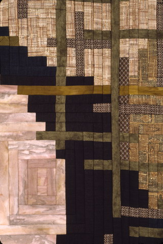 コメント : 円を使いながら、遠近感を表現したくて、色々考えました。頂いた古い着物や、現代大島など、大切に入れています。