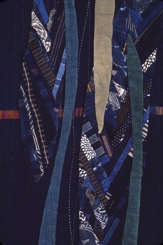 コメント : 20年近くかけて集めた布、集まった布は、日本、アメリカだけでなく、ヨーロッパ、アジア、アフリカといたる所から。すべてが縁あって私の手元にやって来た、いとしい布達ばかりです。ひたすら無心にキルト制作に打ち込めるのは、そんな布がそばにあってこそ。そんな中から端切れ、残り布、不必要にカットされた布達に感謝と謝罪の気持ちを込め、これまでの自分のキルト生活をふり返って作った作品。