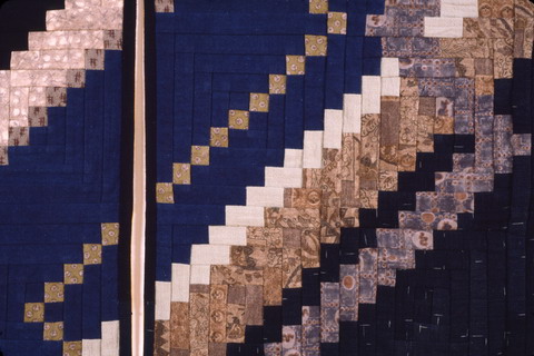 コメント : 母の「玄関にかける"のれん"を作ってほしい」というリクエストにこたえるつもりで作ったもの。そのため中に綿が入っていません。 掛ける場所が決まっていたため、その辺の雰囲気を考慮に入れるという、新しい経験をしました。出来上がってから、やはり"のれん"にふさわしくないと感じ、使っていません。