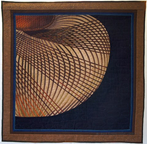 コメント : 2011年に織姫Iを創ってから、あといくつか竹細工からのアイデアを作品にしたいと思っていました。まず、ピーシングでやってみましたが、なかなか思うような形にならず、試行錯誤のうえ断念。ほとんど放棄する気分になっていたとき、夫が「もったいないでしょ ・・・?」その一言で再奮起。結局ミシンと手縫いの両方で、アップリケです。タイで見つけたサロンやスカーフを使って、悪戦苦闘を重ねた、強く思い出に残りそうな作品です。