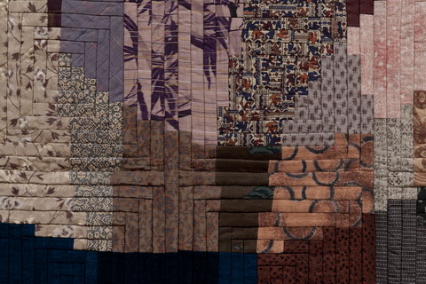 コメント : この作品を制作中に父が永眠しました。下段の7〜8枚のブロックを作ったところでした。どこまで覚えてくれていたことか・・・。約1年の病棟生活にできるだけ付き添い、ひとりの人間がその一生を終るということはドラマなのだと思い知りました。父の魂が、また私の身辺で転生してくれることを祈りながら仕上げたキルトです。