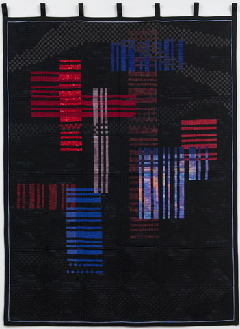 コメント : この作品を制作中に父が永眠しました。下段の7〜8枚のブロックを作ったところでした。どこまで覚えてくれていたことか・・・。約1年の病棟生活にできるだけ付き添い、ひとりの人間がその一生を終るということはドラマなのだと思い知りました。父の魂が、また私の身辺で転生してくれることを祈りながら仕上げたキルトです。