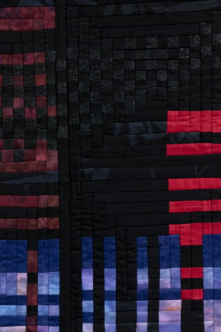コメント : この作品を制作中に父が永眠しました。下段の7〜8枚のブロックを作ったところでした。どこまで覚えてくれていたことか・・・。約1年の病棟生活にできるだけ付き添い、ひとりの人間がその一生を終るということはドラマなのだと思い知りました。父の魂が、また私の身辺で転生してくれることを祈りながら仕上げたキルトです。