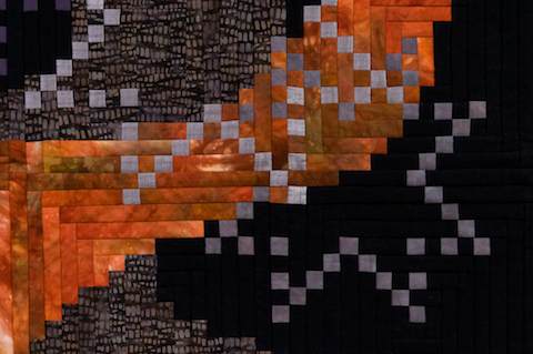 コメント : 「星」を点々で表現し、デザイン化した流れる雲の上に、はかなく飛ばしました。曲線の多いこの様なデザインは、必要用尺の見当が意外に難しく、一部途中で、円の大きさを小さくしたところがあります。