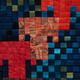 コメント : 今まで使ってきた大量の古布藍染の無地、その残りを集めて、バックグラウンドにし、赤を中心にグレー、茶系でTを降らせました。大好きな手染めのコットンサテンを小さく切って市松にセットして、バックグラウンドとTの間にはさみ、奥行きを出しました。