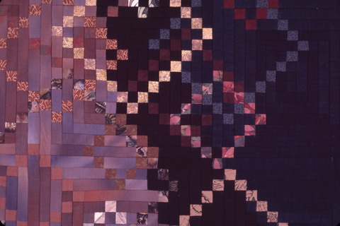 コメント : 日本の古布木綿(藍染)二種類と、ニュージーランドで手に入れた現代木綿で大胆に土台を色分けし、その中に、点々で作る大小の四角をいっぱい散らしました。それらがぶつかり合って、暖かく、優しいエンジェルのような声が聞こえるといいなと夢みて。